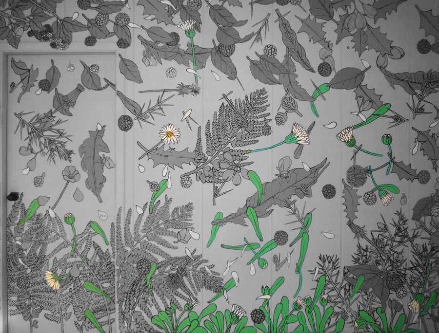 Margarita silvestre. BUOFILIA, fragmento de mural “Mundo gallego”. Fotografía de BUO ESTUDIO Arquitectura & Paisajismo