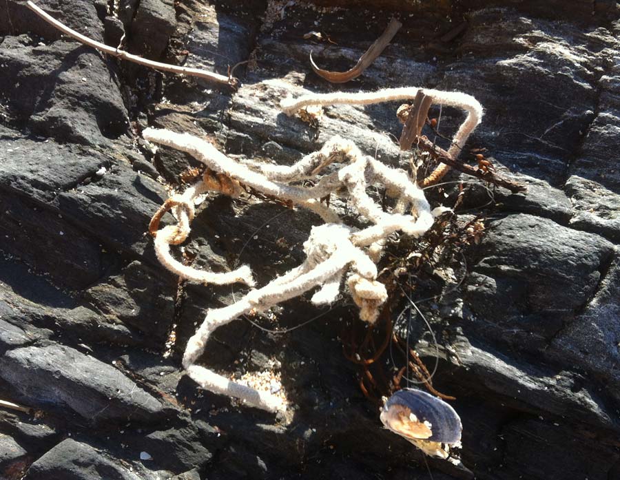 A lo largo del paseo y el campo de fútbol, los residuos encontrados fueron principalmente colillas y restos de plástico, con la presencia de algunos objetos de vidrio y papel. No obstante, la mayor cantidad de basura la encontramos en la zona del espigón tanto en las rocas como en el espacio de playa próxima, encontrando residuos vinculados a la pesca como botas, redes, guantes y cajas de porexpan. En total recolectamos 5 bolsas y media de 30L de capacidad en una hora de trabajo.