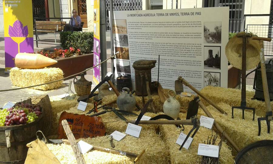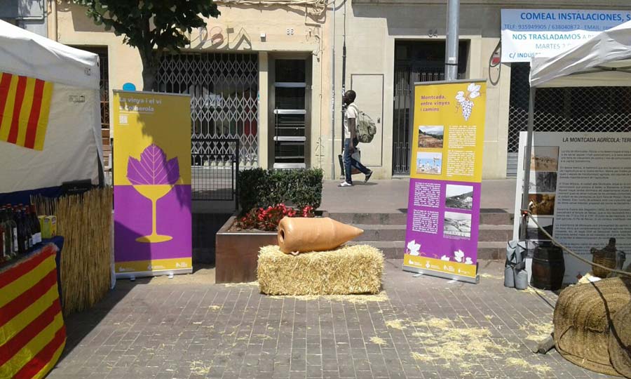 El taller desarrollado con motivo de la Fiesta Mayor contaba con una muestra de los oficios tradicionales así como el stand sobre «Montcada, entre vinyes i camins» que describe como Montcada fue tierra de paso de viajeros y centro productor de vino desde época romana, hecho comprobado mediante el descubrimiento de restos carpológicos (semillas) en las excavaciones del poblado de Les Maleses.